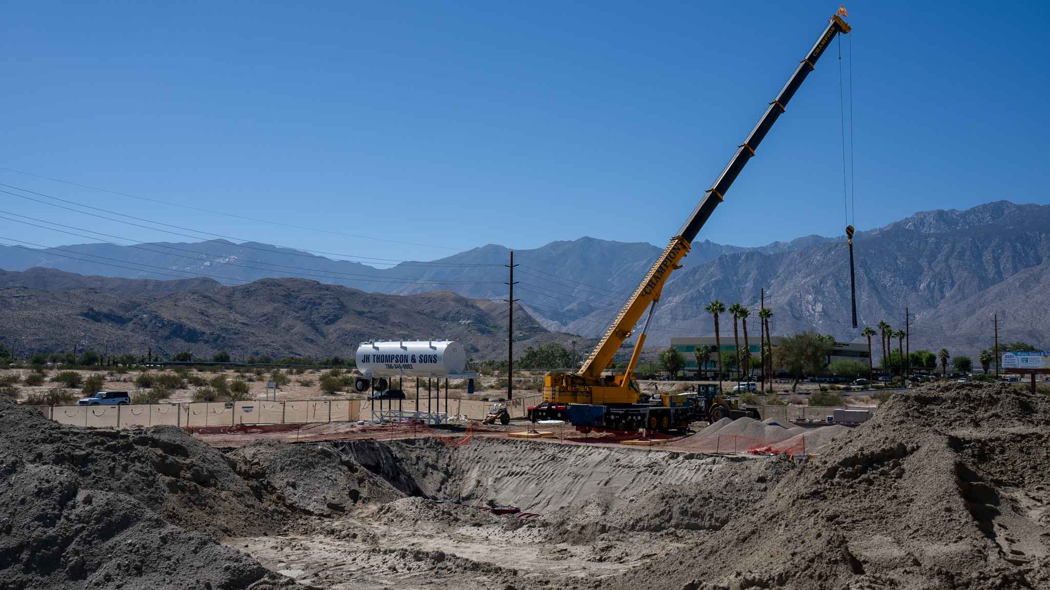 Cathedral City at the northeast corner at Lawrence Crossley Road and Dinah Shore Drive in Palm Springs.